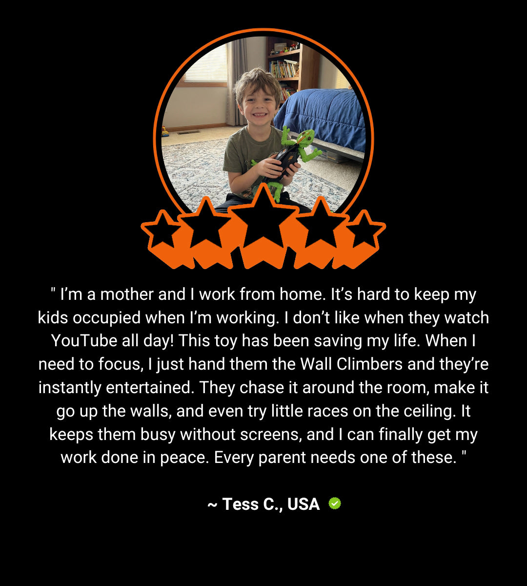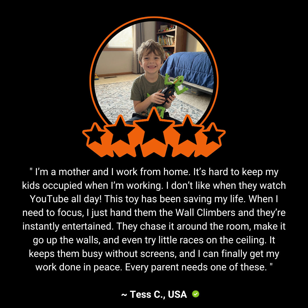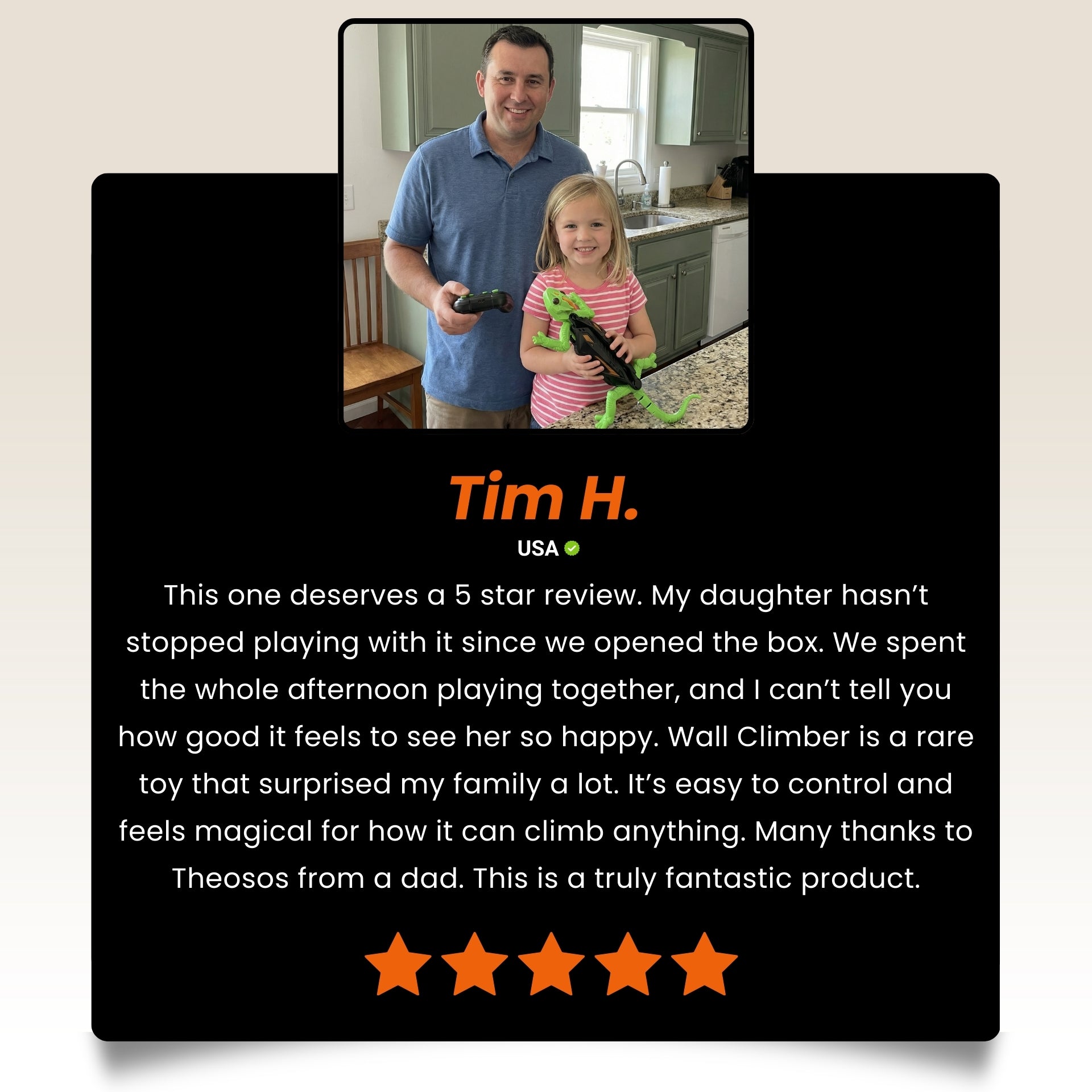 Watch it race across walls, ceilings, and floors with lifelike movement! Parents love seeing their kids' jaw drop as it defies gravity and zooms around the room. Kids chase it, race it, and never get bored of trying new tricks. It’s the only toy they won’t toss aside after a few days.